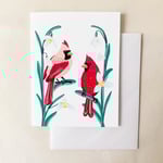 *Cardinal Pair perched on snow drop flowers. White metallic envelope is included.