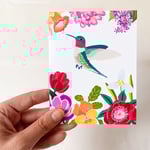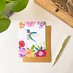 *Hummingbird surrounded by jewel-toned multi flowers. Comes with a brown Kraft Envelope.