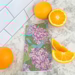 Sweet lilacs in bloom cover this soft teal tea towel, with green leaves adding to the springtime charm. Inspired by the fragrant lilacs growing on my property, this design brings the refreshing beauty of spring to your kitchen all year round.